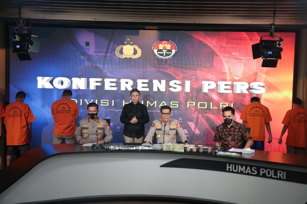 JAKARTA – (Dumai News Net) Ada pemandagan berbeda diacara konferensi pers pengungkapan kasus narkotika jaringan internasional yang digelar Divisi Humas Mabes Polri, Jumat (29/1/2021).
