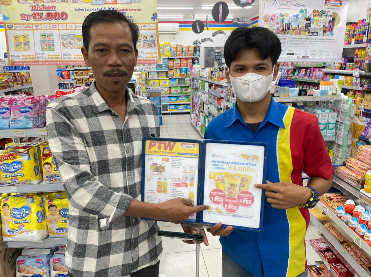 “Saat pemantuan di sejumlah ritel dan super market, petugas di lapangan mengingatkan agar melayani pembelian 2 kilogram minyak goreng. Alhamdulillah, pihak pengelola juga telah memasang pemberitahuan tentang pembelian 2 pacs atau 2 kilogram,” jelas Zulpan.