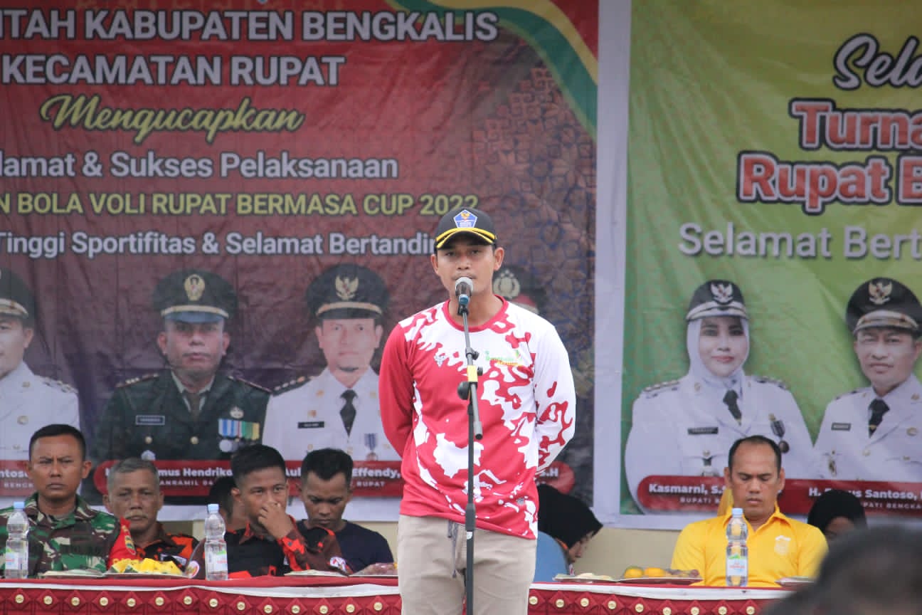Dalam sambutannya sekcam mengatakan bahwa turnamen bola volly ini murni diagendakan atas dasar kegiatan bermasa yang dicanangkan oleh Bupati Bengkalis Ibu Kasmarni, S.Sos.,MMP beserta Bapak Wakil Bupati Bengkalis H. Bagus Santoso.