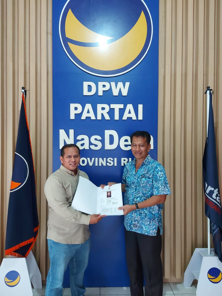 KAMPAR (DNN) – Program NasDem Memanggil yang sudah dibuka sejak November lalu oleh partai Nasdem terus menerima pendaftaran dari berbagai pihak yang ingin mengabdi melalui partai Nasdem, kali ini partai Nasdem didatangi oleh Jhon Satri, yang pernah menjabat sebagai ketua umum Real Estate Indonesia (REI) Provinsi Riau 2005-2008. Jhon Satri datang menyerahkan formulir pendaftaran langsung ke DPW Partai n