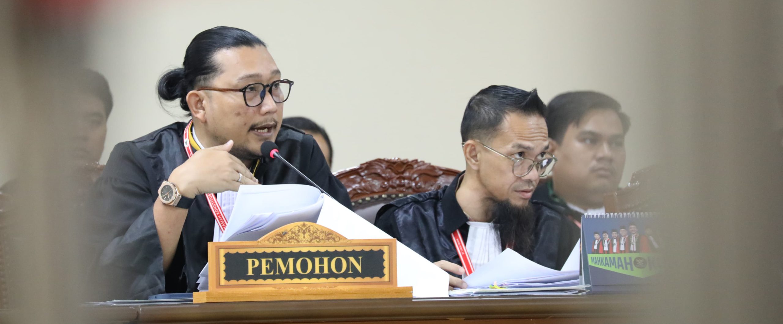 Dalam hal para pihak akan hadir secara luring maupun daring masing-masing pihak hanya dapat diwakili oleh maksimal 1 orang kuasa hukum atau prinsipal, dengan terlebih dahulu menyampaikan pemberitahuan ke Mahkamah melalui email jurpang2@mkri.id atau whatsapp nomor 081119513333 paling lambat 1 hari sebelum persidangan.