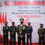 DUMAI (DNN) – Berbeda dari biasanya, Upacara Peringatan Hari Bhayangkara Ke-74 Tahun 2020 dilaksanakan secara terpusat melalui virtual ataupun live streaming