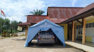 RENGAT (DNN) – Di Halaman Dinas Sosial (Dinsos) Kabupaten Indragiri Hulu (Inhu) tampak tenda biru bertuliskan Kementrian Sosial (Kemensos) yang berdiri tegak pada