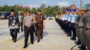 PASIRPANGARAIAN (DNN) – Polres Rohul menggelar apel gelar pasukan operasi Ketupat Muara Takus 2019 di Taman Kota Pasirpangaraian, Selasa (28/5/2019). Apel dipimpin